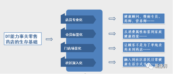 在今后一个阶段,零售药店将主要发展以下业态:应对处方外流和医药分开的新特药房和医院周边药店,注重慢病服务和小病自我药疗的社区专业药店、特色专业药店,服务高品质生活人群多样化健康需求的大健康药店、多元化药店。而药店新零售也将真正拉开帷幕,企业应以数据和技术能力为基础,做好药店专业化、会员标签化、门店场景化和社区深入化的四化服务。