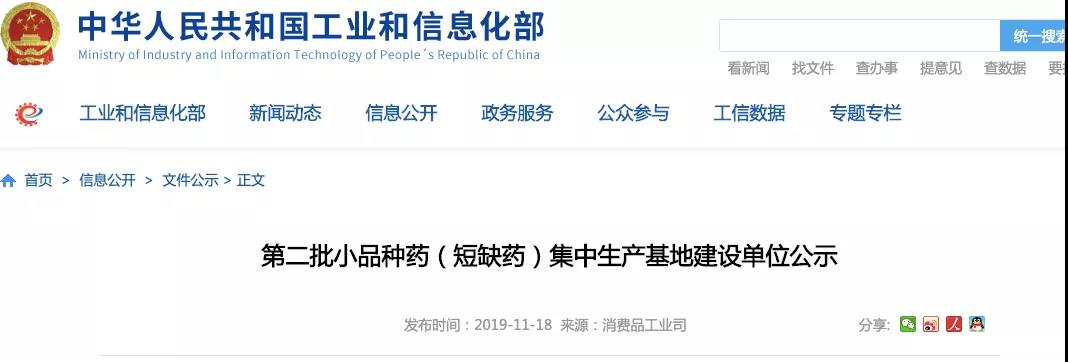 工信部发布的《关于组织开展小品种药(短缺药)集中生产基地建设的通知》提到,结合药品供应保障需求和集中生产基地的全国布局,选择认定5家左右企业(集团)建设小品种药集中生产基地。通过协调解决小品种药文号转移、委托生产、集中采购、供需对接等问题,支持企业集中产业链上下游优质资源,推动落实集中生产基地建设目标任务,到2020年,实现100种小品种药的集中生产和稳定供应。