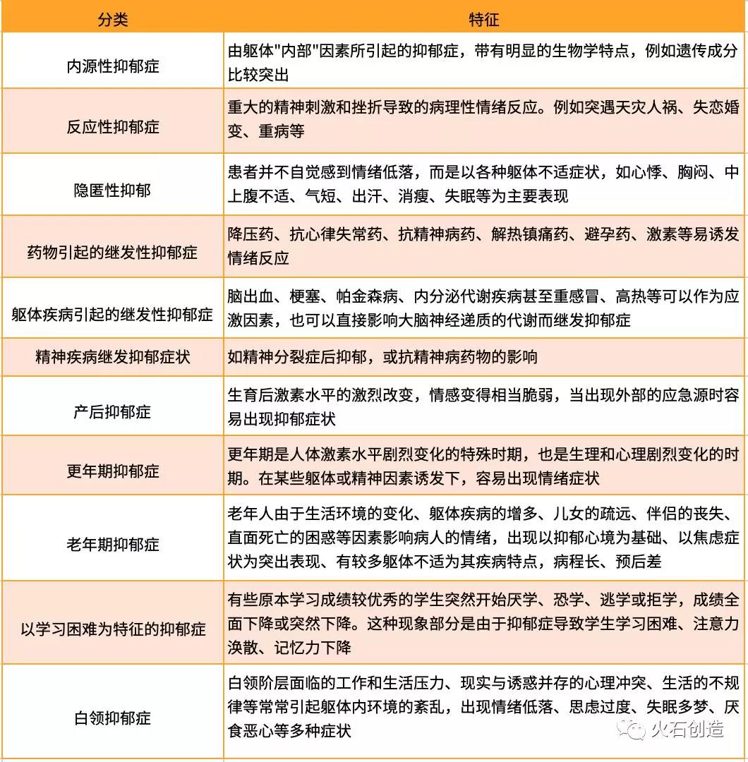表1 抑郁症的常见分类及特征