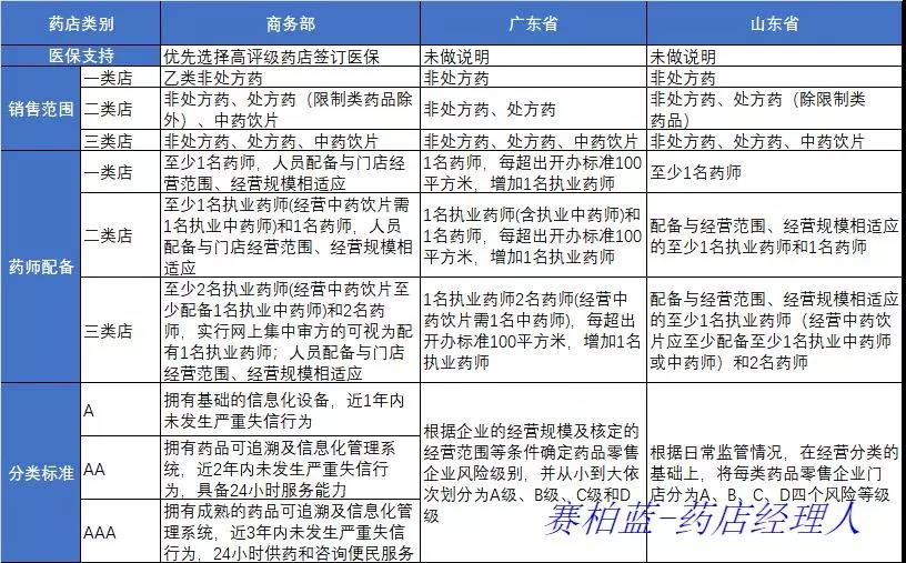 除了对连锁门店数量及药店经营面积提出要求外,山东省作为医药大省此次出台的分级分类政策影响意义较大,未来一批药店将禁售处方药及中药饮片,同时在医保资质方面又与商务部及广东省有所不同。
