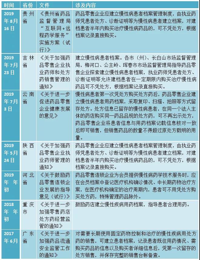 其实,提出该项举措的还不只有以上三省,赛柏蓝—药店经理人梳理发现,截止目前,还有7个省级行政区明确表态,零售药店给慢性病患者建档管理,即可凭第一次留存的处方销售处方药。具体如下: