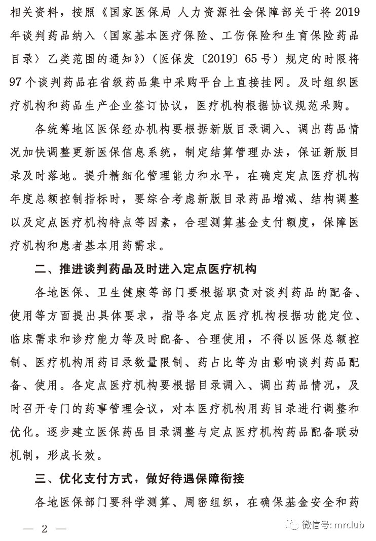 附:《关于做好 2019 年国家医保谈判药品落地工作的通知》