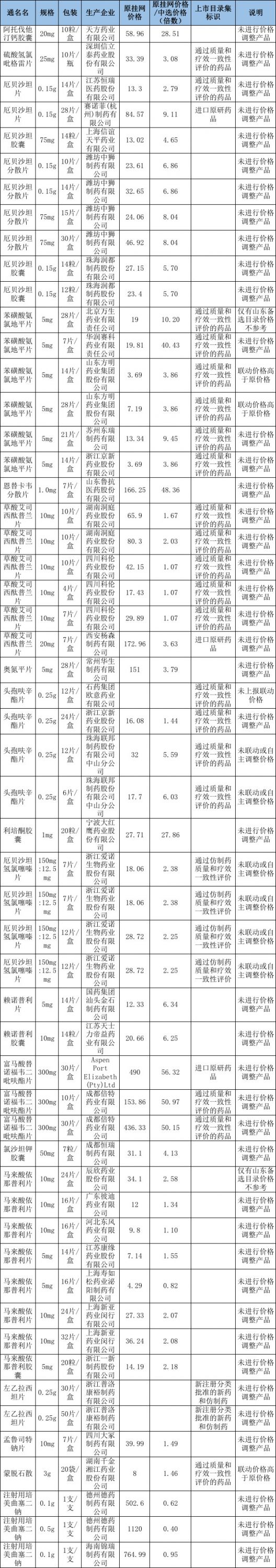 2、未过评产品调整后价格高于中选价格产品:指未通过药品质量和疗效一致性评价的其他仿制药品调整后价格高于中选产品价格;