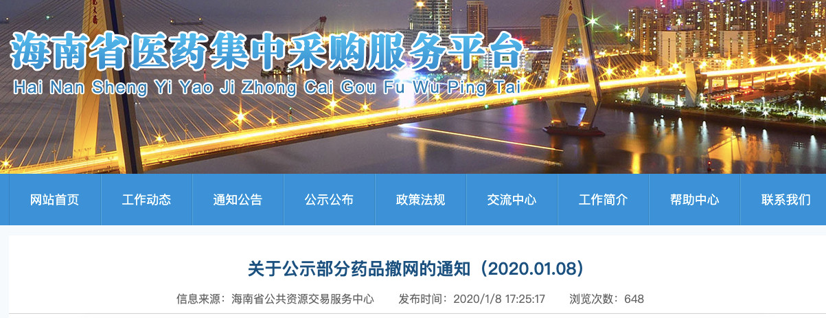 医药网1月13日讯 1月8日,海南省医药集中采购中心发布《关于公示部分药品撤网的通知(2020.01.08)》,有250个药申请撤销挂网。
